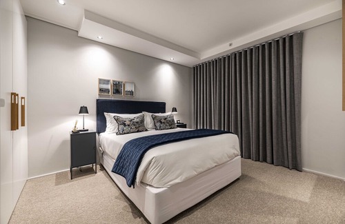 High up on the 4th Floor! Beautiful Sea Views. Fully furnished and equipped, designed to perfection. This elegant 1 bedroom styled apartment in the brand new Cosmopolitan block . Modern open plan lounge, dining room and kitchen with top-of-the-range finishes, 24 Hour security, undercover secure parking bay. Free Wifi Close to all the shops, restaurants and amenities. Bright and sunny apartment, north facing. A stone throw away from the beach front. 5 minute drive to Camps Bay and Clifton Beaches. Live in luxury! Airstay Prop Management looks forward to hosting you THE CLEANING FEE IS FOR THE EXIT CLEAN. IF ONE REQUESTS A CLEAN DURING STAY IT WILL BE R200 PER DAY.