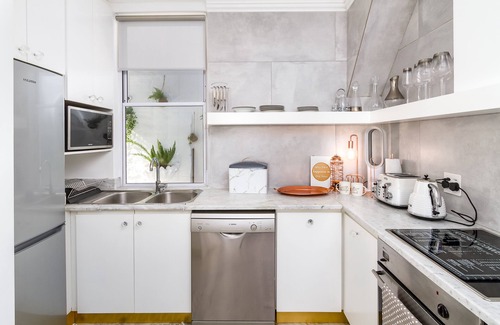 Elegant double doors welcome you on arrival to this designer ultra-modern and spacious apartment and the interior is a picture of laid-back luxury, where classic architecture meets seamlessly with contemporary glamour. The air-conditioned apartment has a typical open plan kitchen/ dining/ living area, complete with all the necessary amenities, including but not limited to a Nespresso coffee machine, Marshall speaker, flat screen TV and sound bar, dishwasher, washing machine and tumble dryer.