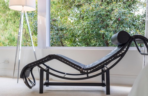 An upper level, open plan modern suite. Large sliding windows open onto a leafy tree and create the feeling of living in a tree house. This spacious apartment has a fully equipped kitchen .The queen size bed has white ,crisp Egyptian linen.