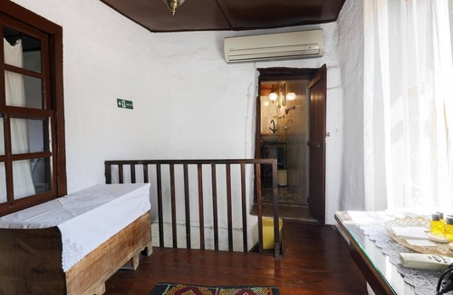 Two storey traditional villa for 5 person. This is a 200 years old stone and wood architecture house with a living room downstairs and 2 double 1 single room upstairs. It is located on the upskirts of ancient city Ephesus in the village called Sirince. It offers bed and breakfast accomodation. The house offers a wide panaromic view of the historical village and is sorrounded by a garden.